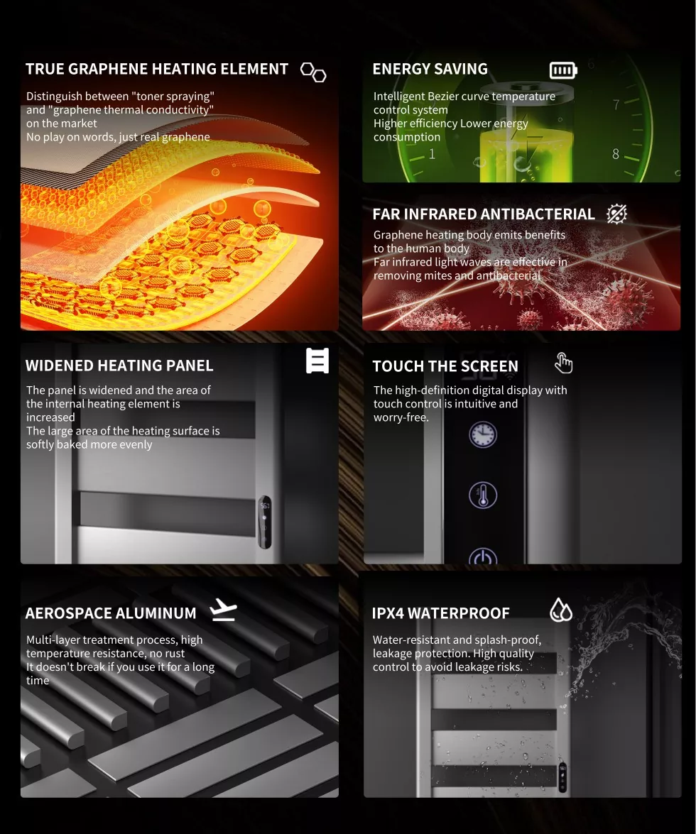 Meie 112W grafeeni elektrirätikuriiulil pole mitte ainult silmapaistvaid jõudlust, vaid integreerib ka keskkonnasõbralikud ja energiasäästlikud funktsioonid, mis vastab täpselt kaasaegsete leibkondade kõrgetele standarditele kodukvaliteedi osas. Ükskõik, kas isiklikuks kasutamiseks või hulgi hankevajaduseks saab Meishi pakkuda lahendusi.