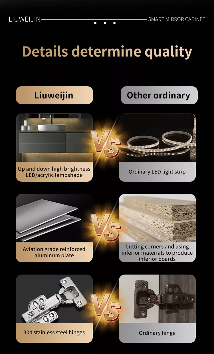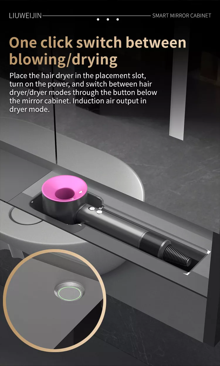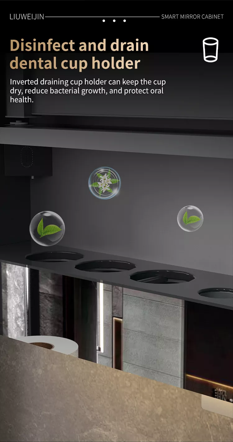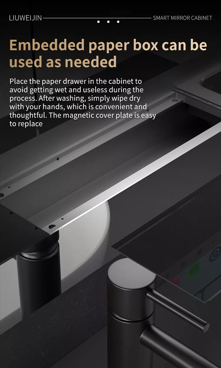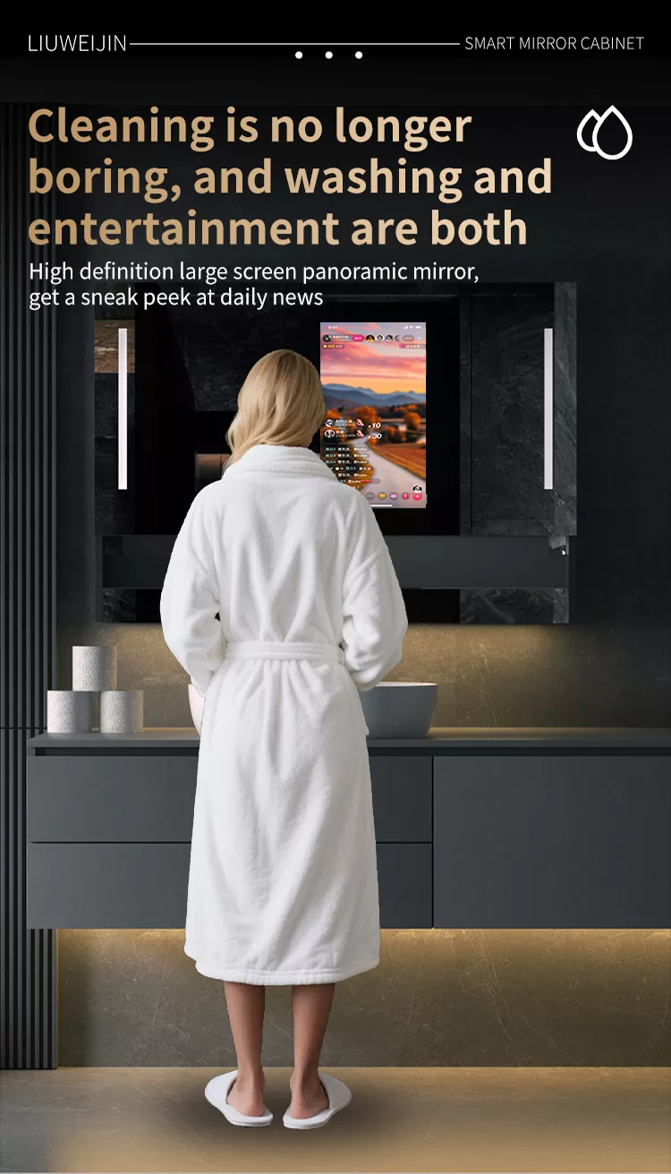 See Liuwei Jinshi Grafeeni nutika vannipeegli kapp on valmistatud sulami materjalist, mis on vastupidav ja niiskusekindel. LED-heleda riba, automaatne hambapasta pigistamismasin, hammaste tassi tühjendusreeg, hammaste tassi hammaste harja ultraviolett-desinfitseerimisseade, torude kuivat seade, torustikku kuivat seadet, torustikku kuivat seadet. ekraan, induktsiooni käte desinfitseerija, peegelkatte süsteem, Chengi tüüpi juhtimiskeskus. Luksusmudel on varustatud grafeenkütte ja kuivatamise rätikuraami, intelligentse lõhnasüsteemi ja õhupuhastussüsteemiga. Lisaks toetab suur ekraan oma elu rikastamiseks heli- ja video meelelahutust, ilmastiku- ja aja kuvamist, rakenduste allalaadimist jne.