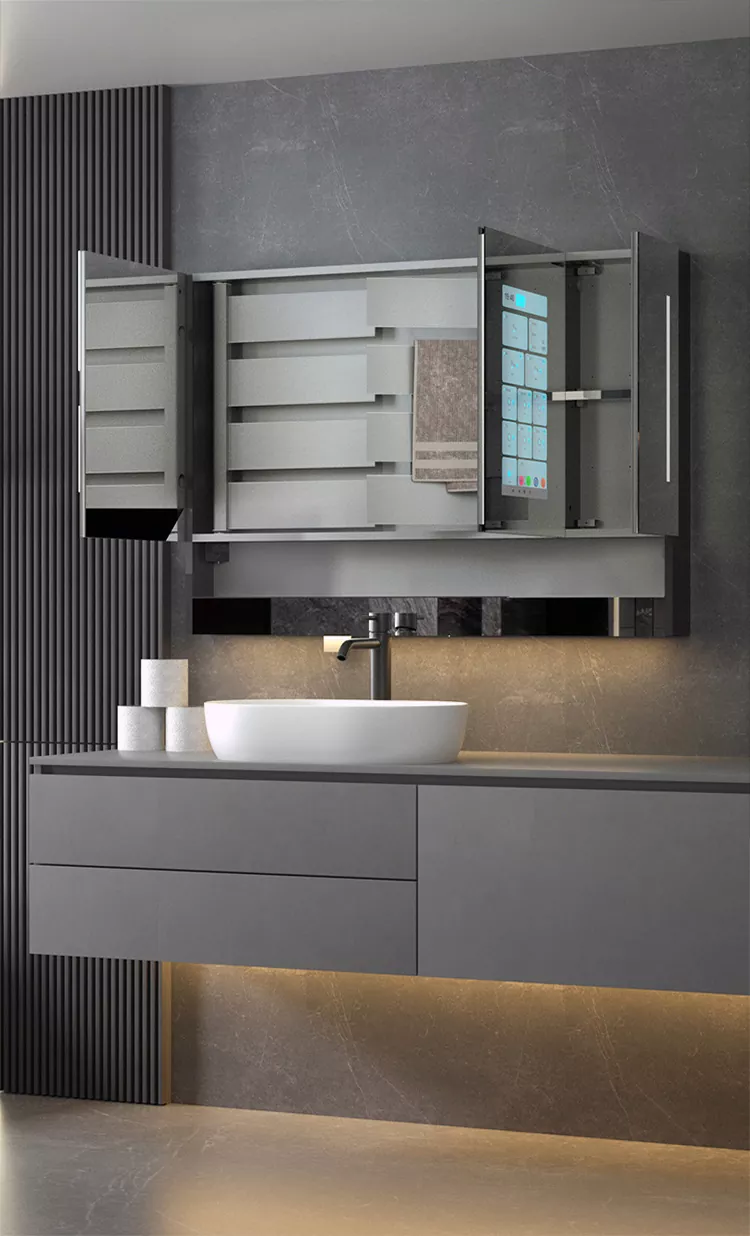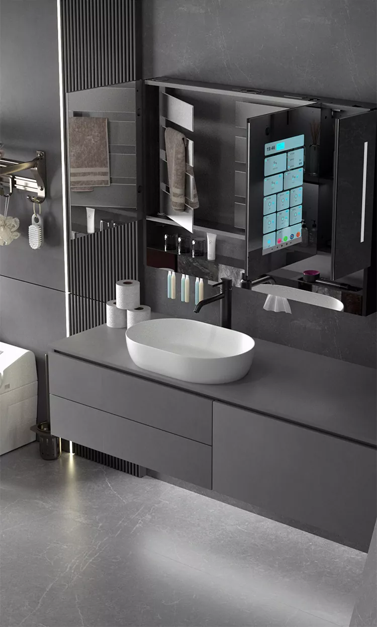 Grafeenielu pioneerina toetab Meshow mõistet "uued materjalid, uued tehnoloogiad ja uus elu". See on kohandatud grafeeni nutika vannipeegli kapp. Toode kasutab sulami kere, mitmekihilist pihustamist, kere on vastupidav ja roostekindel. Peegelkapi peegel on varustatud peegli puutetundliku ekraani ja nutika kiibiga. See saab ekraanil lõpule viia multifunktsionaalse juhtimise ja audiovisuaalse meelelahutuse.Support Custom Download App. Tootel on rikkalikud funktsioonid. Kõik mudelid on varustatud standardse LED-tule ribaga, automaatne hambapasta pigistamismasin, hammaste tassi tühjendusraam, hammaste tassi hammaste harja ultraviolett-desinfitseerimisseade ja pardli desinfitseerimisseade.Kubendatud paberisahtlit, kaheotstarbelise puhuri/kuivati konverteerimisseade, Mirror Kõrgetasemeline ekraan, Mirror Center DEFOGRY, Mirr DEFOGRY, Mirr DEFOGRY, Mirr DEFOGRY, Mirr DEFOGRY, Mirr DEFOGRY, Mirr DEFOGRY, Mirror DEFOGRY, Mirror Center, Mirror Centery, Mirror Centery, Mirror DEFOGRY, Mirror Centery. Varustatud grafeeni kuumutamise ja kuivatamise rätikuraami, induktsiooni käte desinfitseerija, intelligentse lõhnasüsteemi ja õhupuhastussüsteemiga.